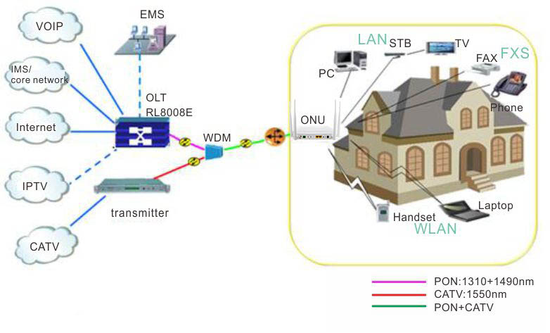 RL802GCW-D terminal devices are designed for fulfilling FTTH and triple play service demand of fixed network operators or cable operators. The box is based on the mature Gigabit GPON technology, which have high ratio of performance to price, and the technology of 802.11AC/n/g/b WiFi (2T2R), Layer 2/3, CATV support WDM as well. They are highly reliable and easy to maintain, with guaranteed QoS for different service. And It is fully compliant with technical regulations such as ITU-T G.984.x and technical requirement of GPON Equipment from China Telecom.